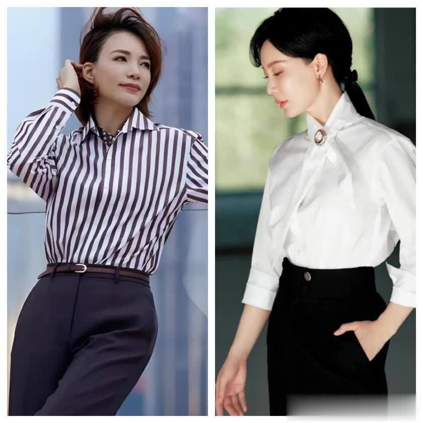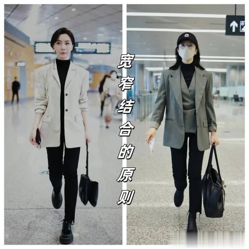 对于这个年龄段的女性而言,身材难免会有些发福,不像年轻时那么具有线条感。因此,适度宽松的单品可以很好的遮住我们身上多余的肉肉,同时结合版型相对修身的单品进行一个很好的搭配。这样整体上就会给人一种无与伦比的利落感觉,同时又很遮肉显瘦。